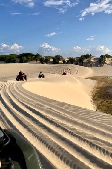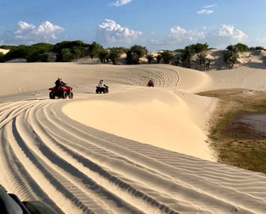 Giornata adrenalinica con escursione in quad lungo i Pequenos Lençóis Maranhenses. Attraversiamo sentieri sabbiosi, zone allagate e panorami selvaggi fino alla spiaggia di Caburé, tra oceano e fiume. Un’esperienza intensa e spettacolare, perfetta per chi ama l’avventura e la natura incontaminata. Rientro a Barreirinhas nel pomeriggio.